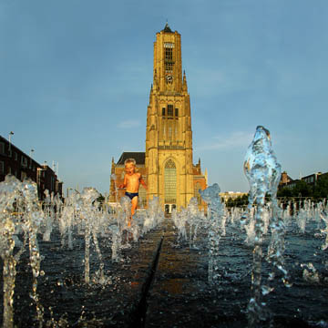 Water in de stad, in de vorm van bv. Fonteinen geeft verfraaiing,