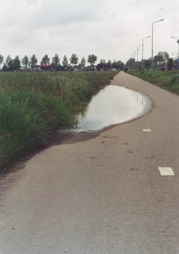 Dit is een fietspad op de bodem van een drooggemalen meer